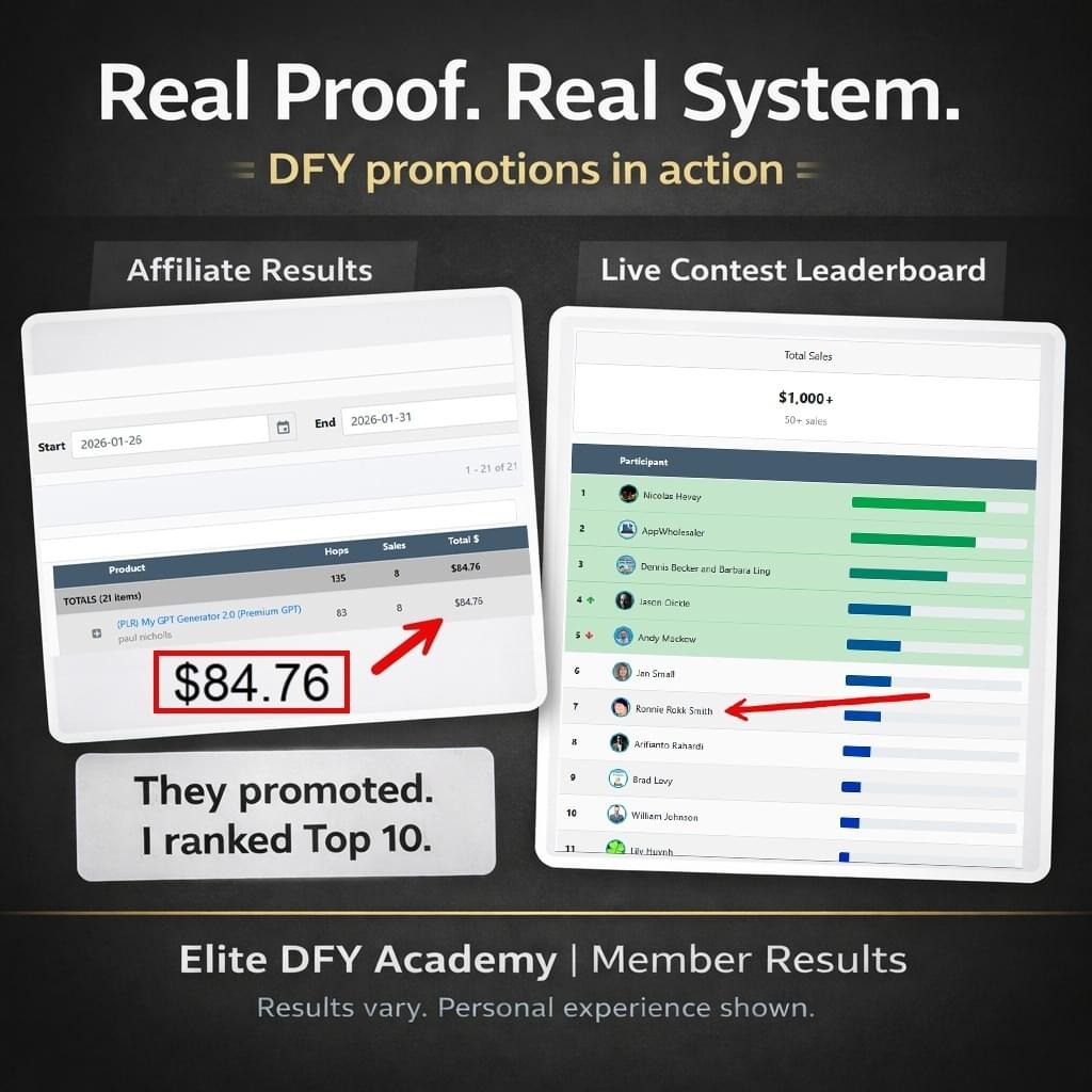 You’re plugging into a structured DFY promotion system designed to generate commissions and leaderboard visibility.